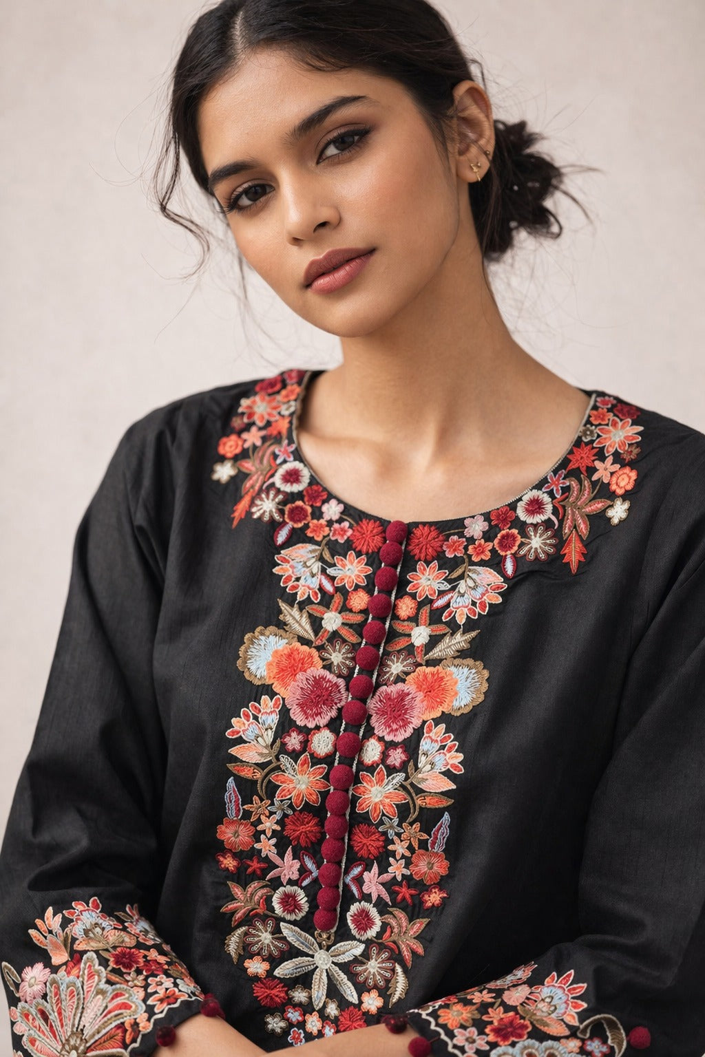 - Fabric Sourcing: We carefully select premium lawn, silk, chiffon, and cotton fabrics from trusted suppliers