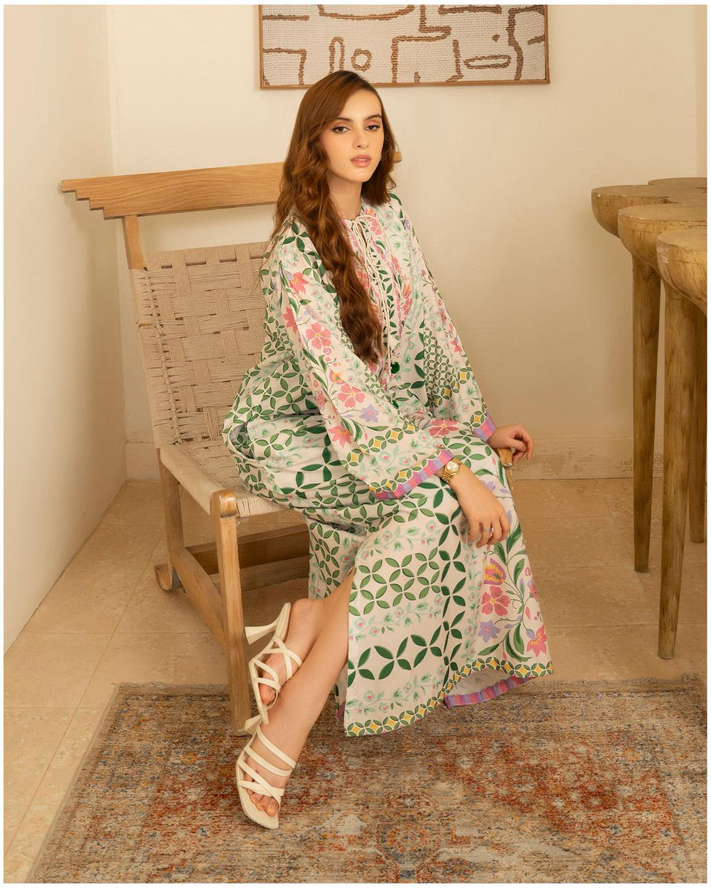 This three-piece outfit is made with soft and breathable Korean crepe, giving a smooth and comfortable feel for everyday use. The fabric is light enough for warm days and cozy enough for cooler weather, making it suitable for all seasons. The suit comes with a fresh blend of floral and geometric patterns that add a clean, graceful, and balanced touch to the overall look.