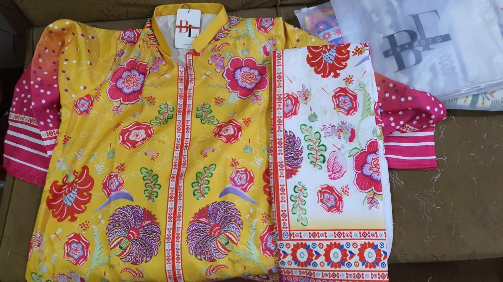 Step into style with our vibrant Yellow & Pink Floral Co-Ord Set. This set features a beautifully crafted short shirt adorned with intricate floral and fauna motifs and complemented by its gradient hues of yellow, pink, and purple. The wide, flowy sleeves add a touch of sophistication, while the contrasting striped border detailing makes this ensemble pop with charm.